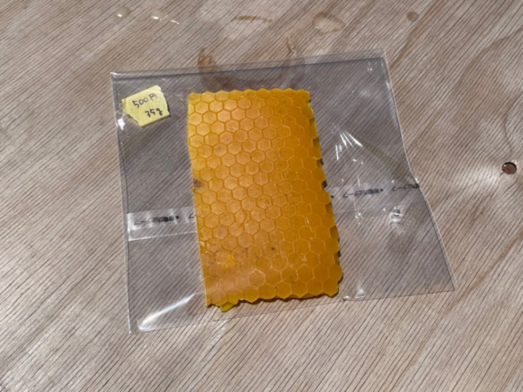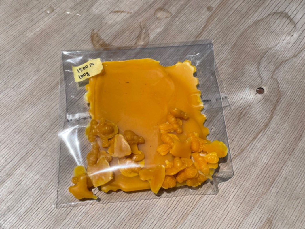 〇熱水での一次精製後、太陽光で溶かして不純物を濾しました。